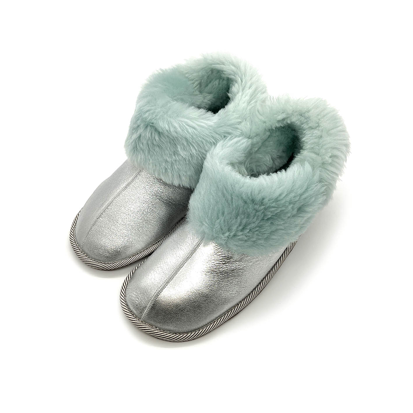 PATIQ Glitzer Mintfarben sind eine supergemütliche Ergänzung zu unserem Sortiment an Hausschuhen mit weicher Sohle – hergestellt aus weichen Leder und Fell-Offcuts. Die Fellbündchen können für extra Wärme hochgekrempelt werden.